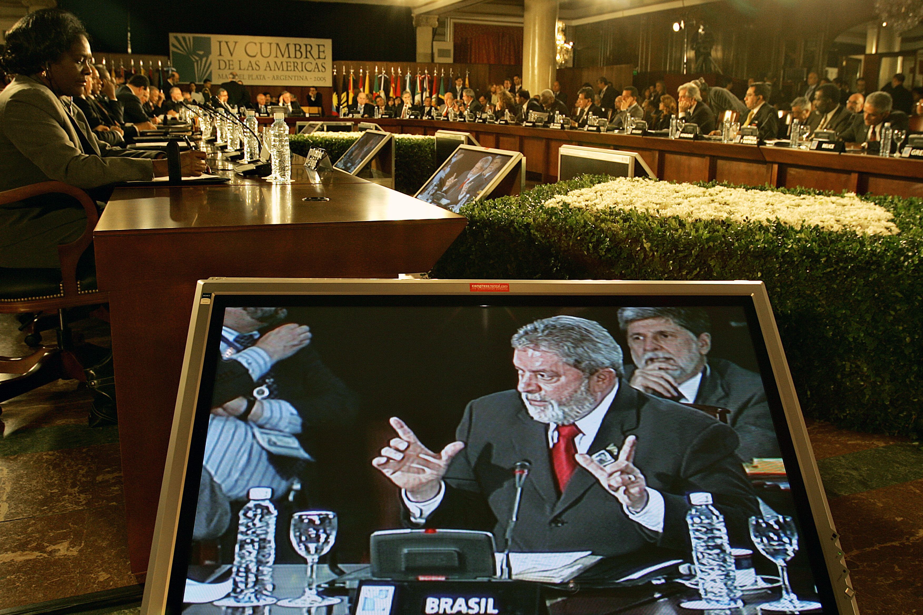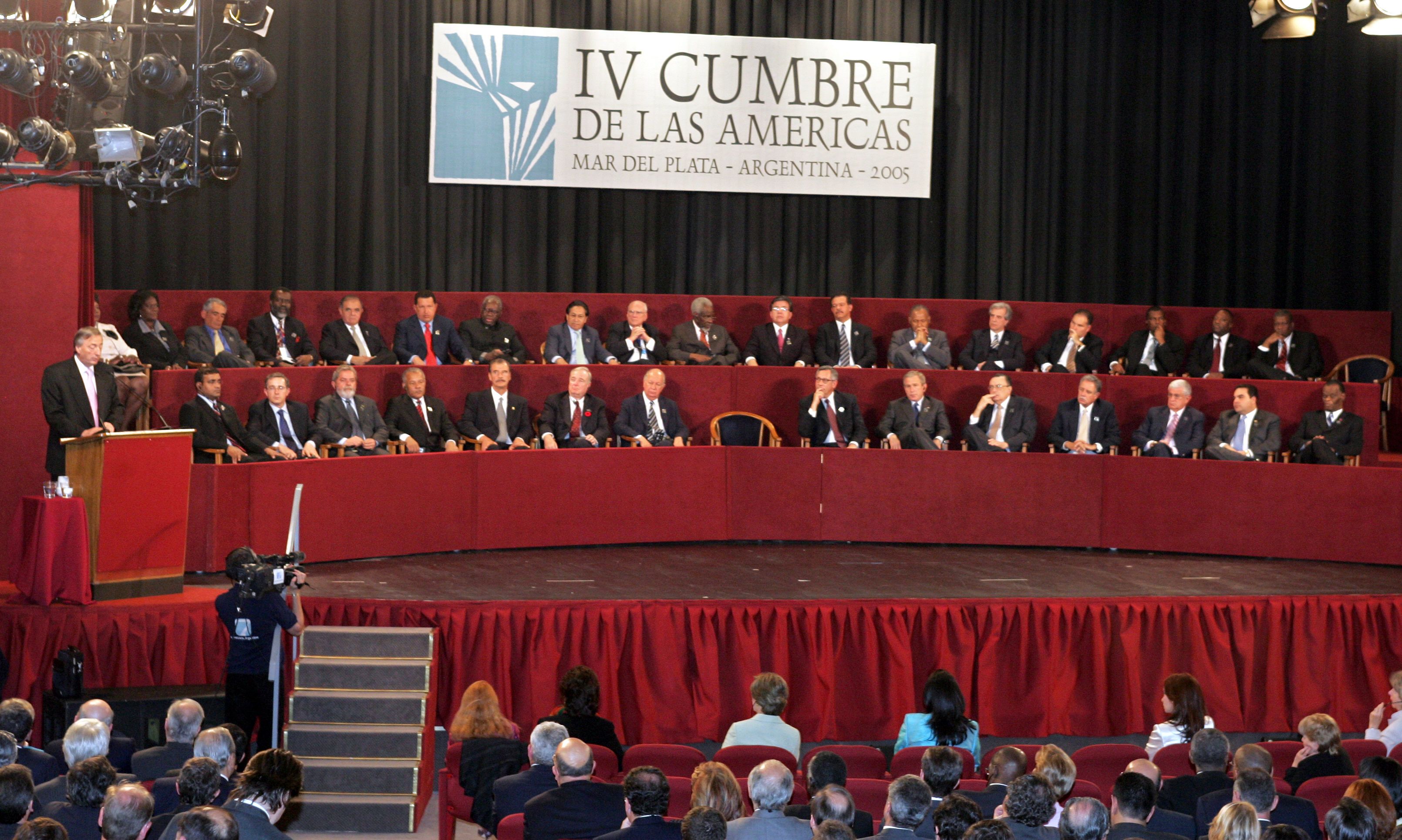Una postal de la célebre IV Cumbre de las Américas, en Mar del Plata, en la que naufragó el proyecto del ALCA, el área de libre comercio continental impulsada por EE. UU.