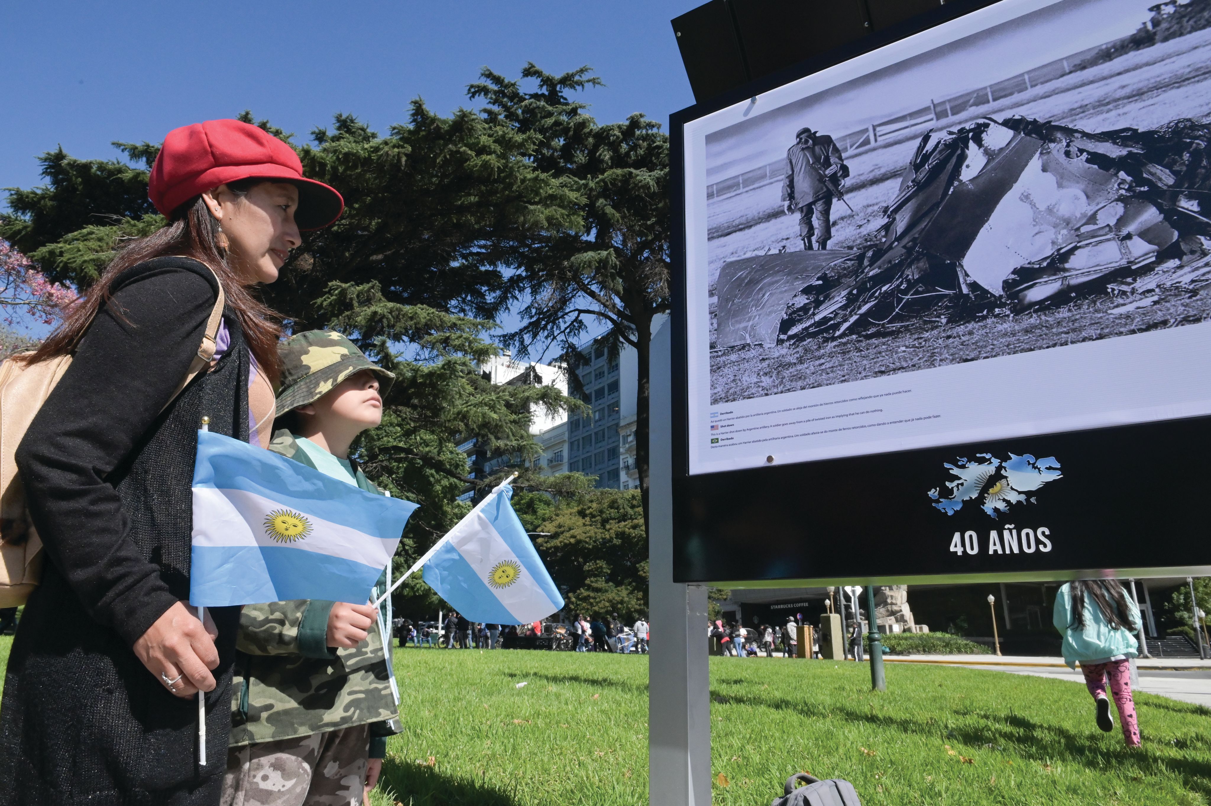 Taeda participó del acto central en conmemoración a los caídos en el Cenotafio de Plaza San Martín con la muestra itinerante “Malvinas, retratos de un sentimiento”.