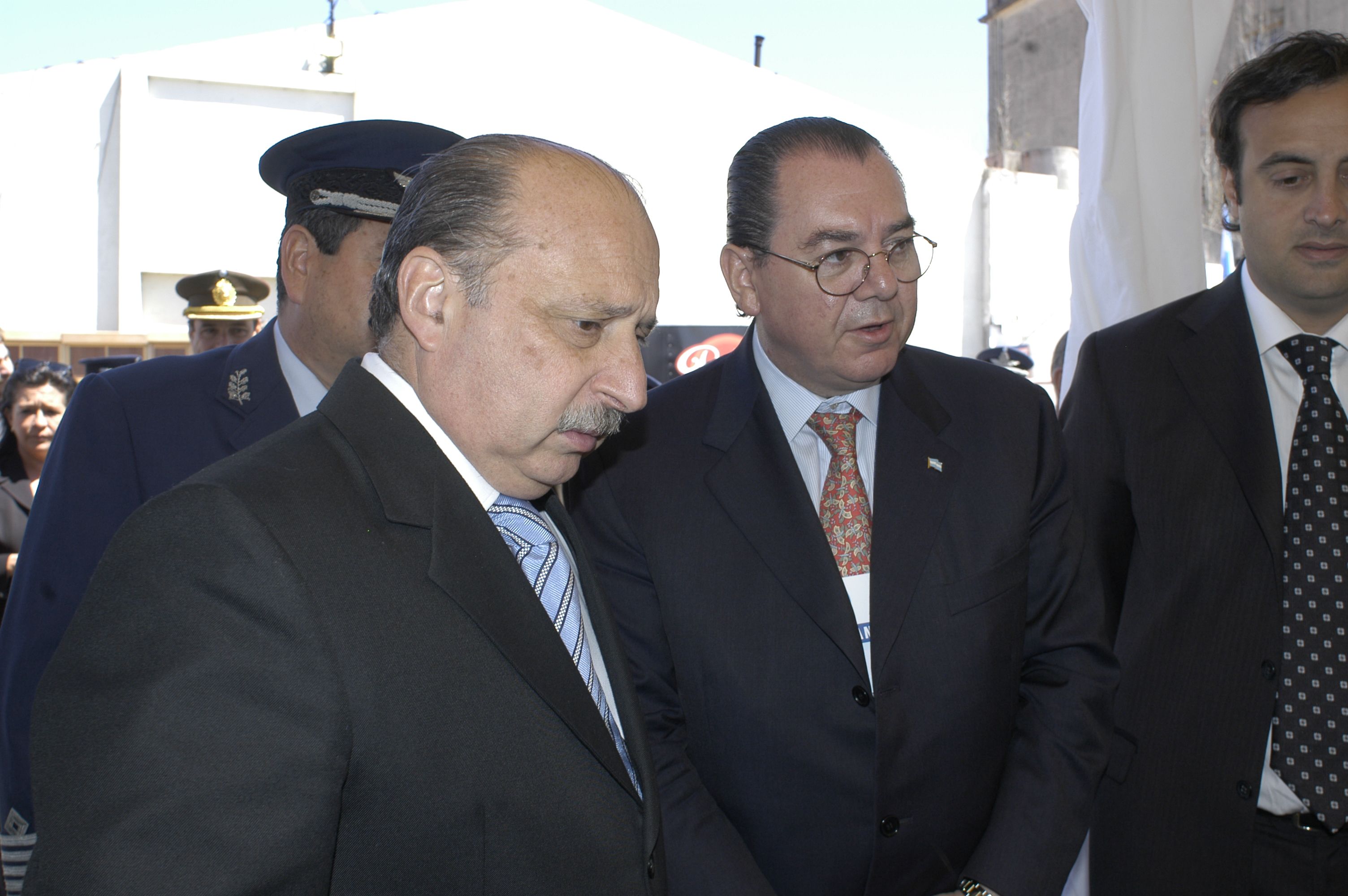 El entonces ministro de Defensa, José Pampuro, junto a Mario Montoto, durante el Simposio de Investigación y Producción para la Defensa (Sinprode).